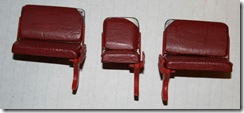 Here is one of the tram seats made up. This was one of the prototype seats and was painted for the upper saloon.